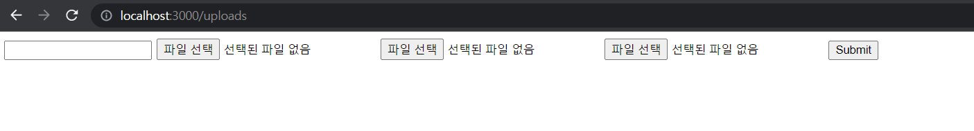 uploads.html을 브라우저로 열었을 때 위와 같이 3개의 input 태그가 모두 나타난다.
