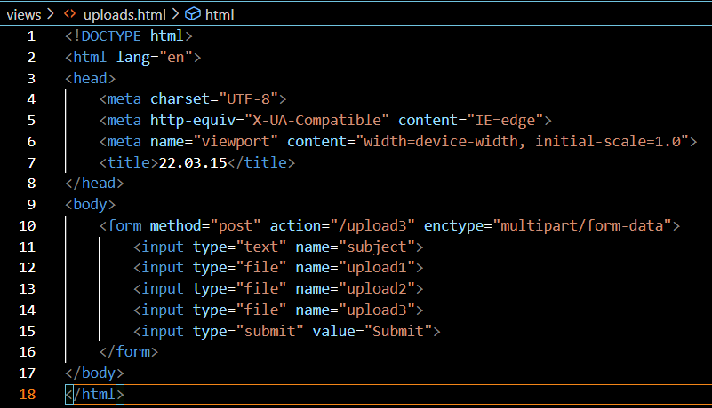 uploads.html에는 한 번에 1개씩 여러 개의 파일을 업로드할 수 있도록 하였다.