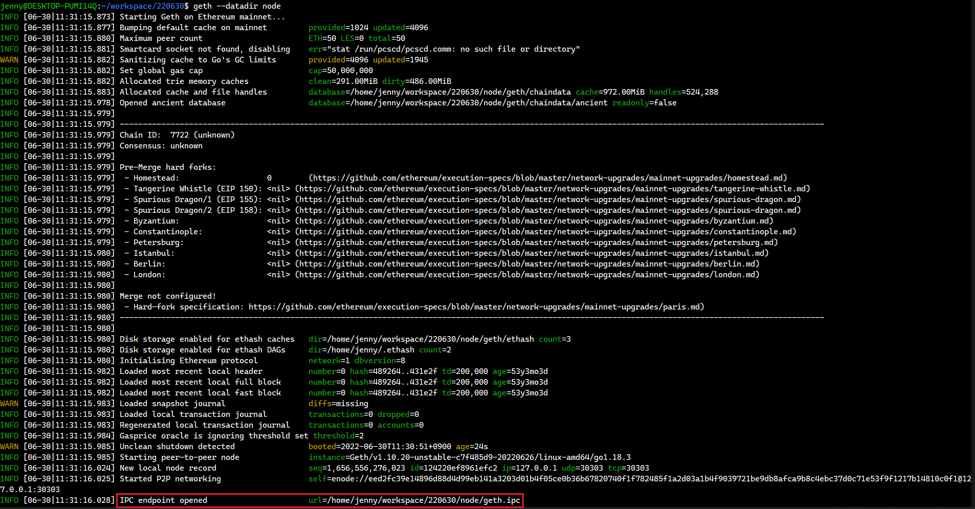 $ geth --datadir node --nodiscover