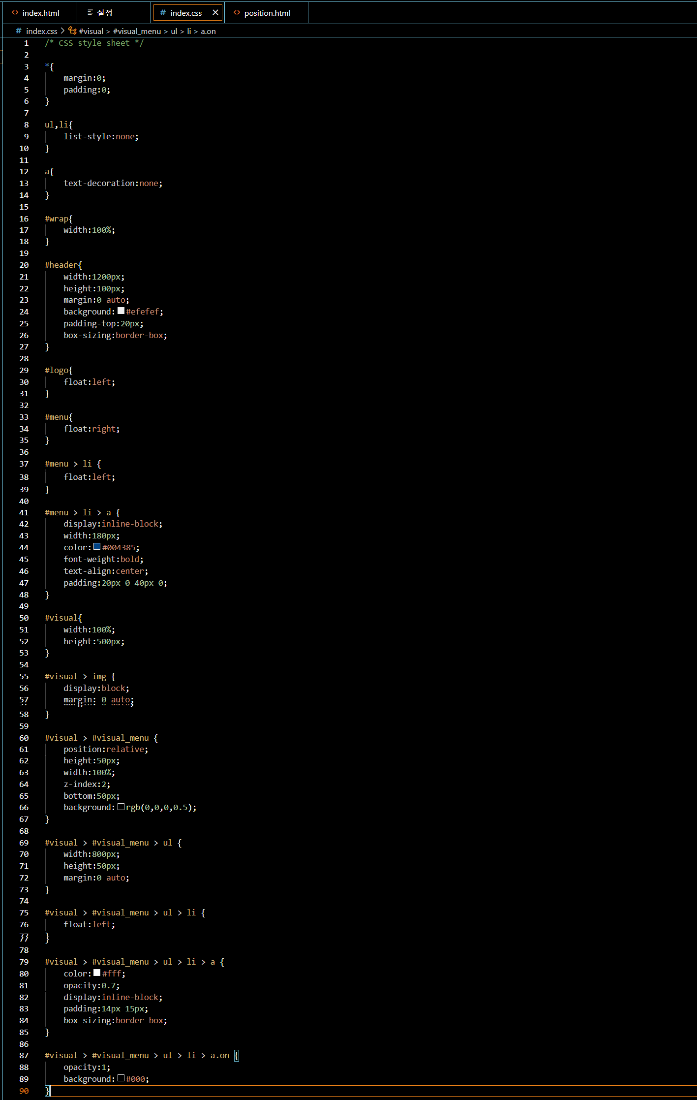 추가적으로, z-index는 2개 이상의 이미지가 화면에 겹쳐서 나타날 때 앞에 보여지는 우선순위를 정하기 위해 사용된다. z-index:n;으로 사용하며, n이 클수록 우선순위가 높다.