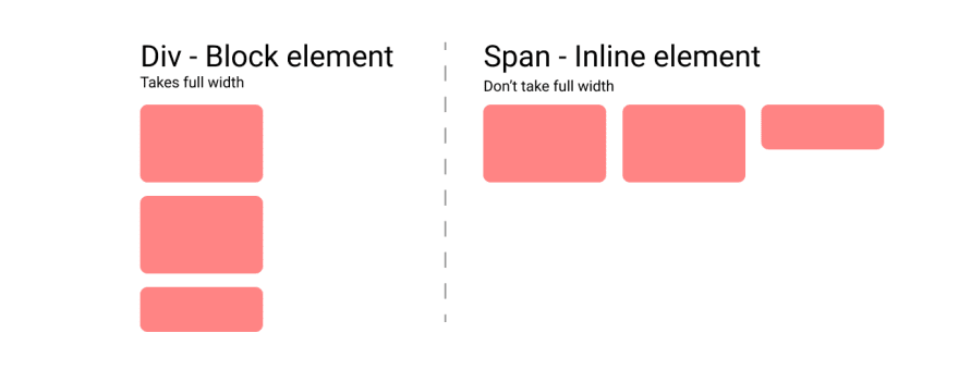<div>와 <span> 태그는 영역을 설정할 때 필요하다. 그럼 어떨 때 <div>를 쓰고, 어떨 때 <span>을 사용할까? 정답은 없다. 상황에 맞춰 사용하면 되기 때문이다. 한 웹페이지를 제작할 때 <div>만 써도 되고, 아니면 <span>만 쓰는 것이 가능하지만 보통은 그렇게 만들지 않는다. <div>와 <span>의 가장 큰 차이점은 <div>는 block element이고, <span>은 inline element라는 것이다. [그림 8]에서 볼 수 있듯이 <div>는 한 영역이 한 줄을 모두 차지하기 때문에 다음 element는 block이든 inline이든 그 다음 줄에서 시작한다. <span>은 설정한 영역의 크기만큼만 공간을 차지하기 때문에 <span> 태그 오른쪽에 공간이 있다면 다음 inline element가 붙을 수 있다. 대체로 큰 영역을 나눌 때에는 <div> 태그를 사용하고, 세부 하위 영역을 나눌 때 <span>을 쓴다.